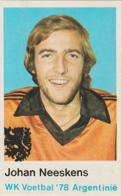 Origineel voetbalplaatje van het merk Inter Footbal uitgegeven door Kortekaas Merchandising BV in 1977. Betreft plaatje van Johan Neeskens van het Nederlands Elftal voor het WK 1978.