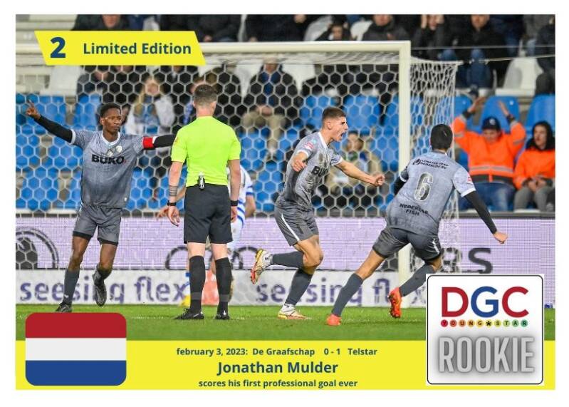 Vandaag is plaatje #2 uit de DGC Young Star Series in productie gegaan. Het betreft een uitgave ter ere van het allereerste betaald voetbal competitie doelpunt van Telstar speler Jonathan Mulder.