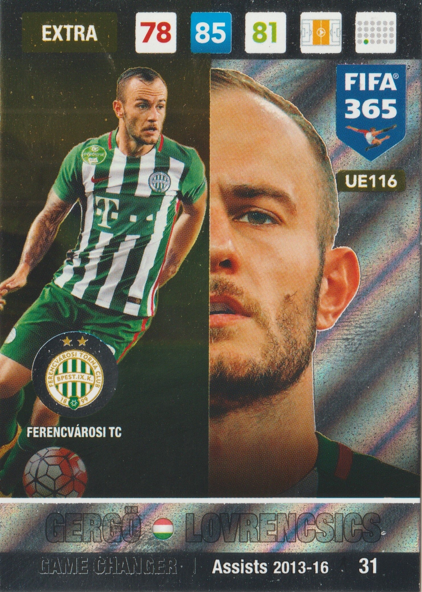 #UE116: Gergö Lovrencsics (Ferencvárosi TC) Panini FIFA 365 - Adrenalyn XL 2017 Update Edition