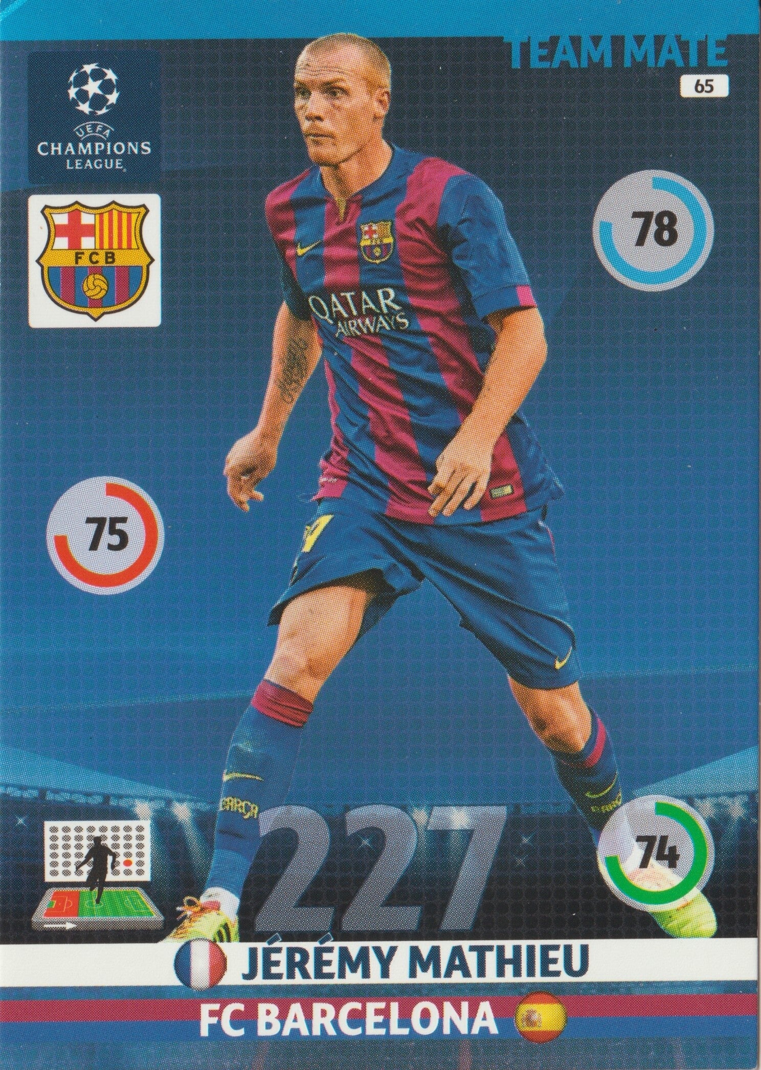 #65: Jérémy Mathieu (FC Barcelona) PANINI ADRENALYN XL CL 2014-2015
