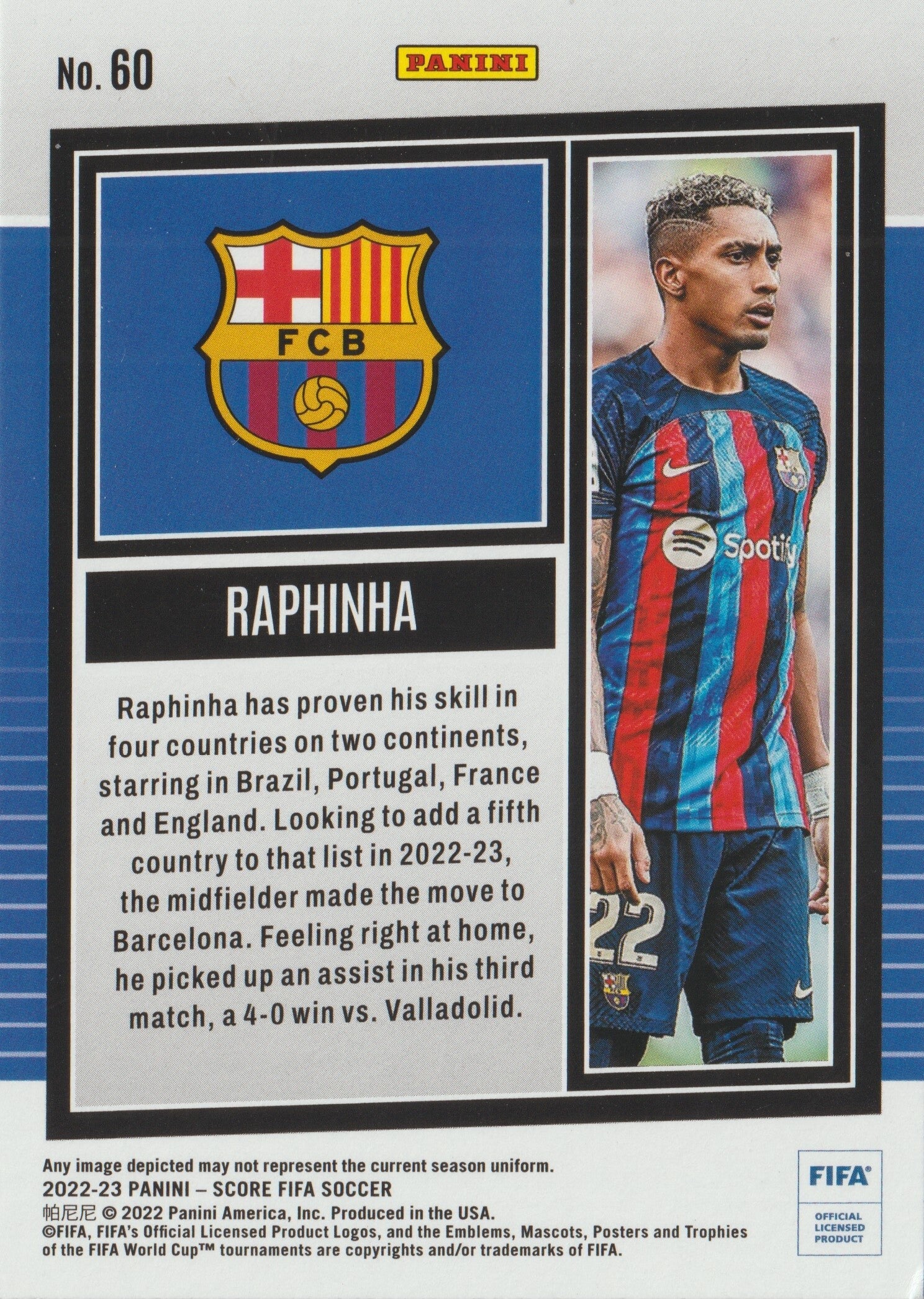 #60: Raphinha (FC Barcelona) - Panini Score FIFA Soccer 2022-2023
