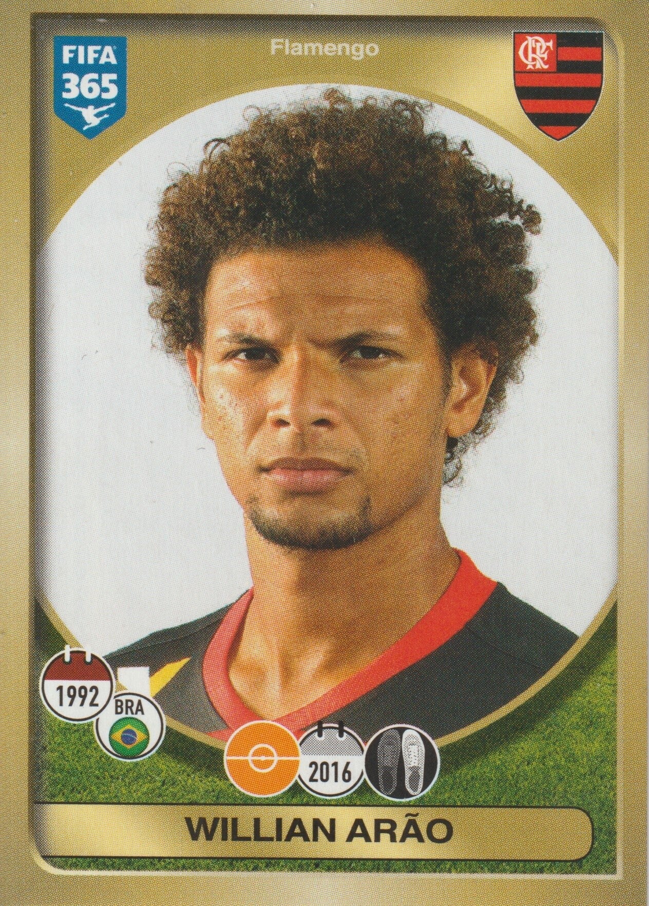#606: Willian Arão (Flamengo) - Panini FIFA 365 - The Golden World of Football 2017 (2016-2017)