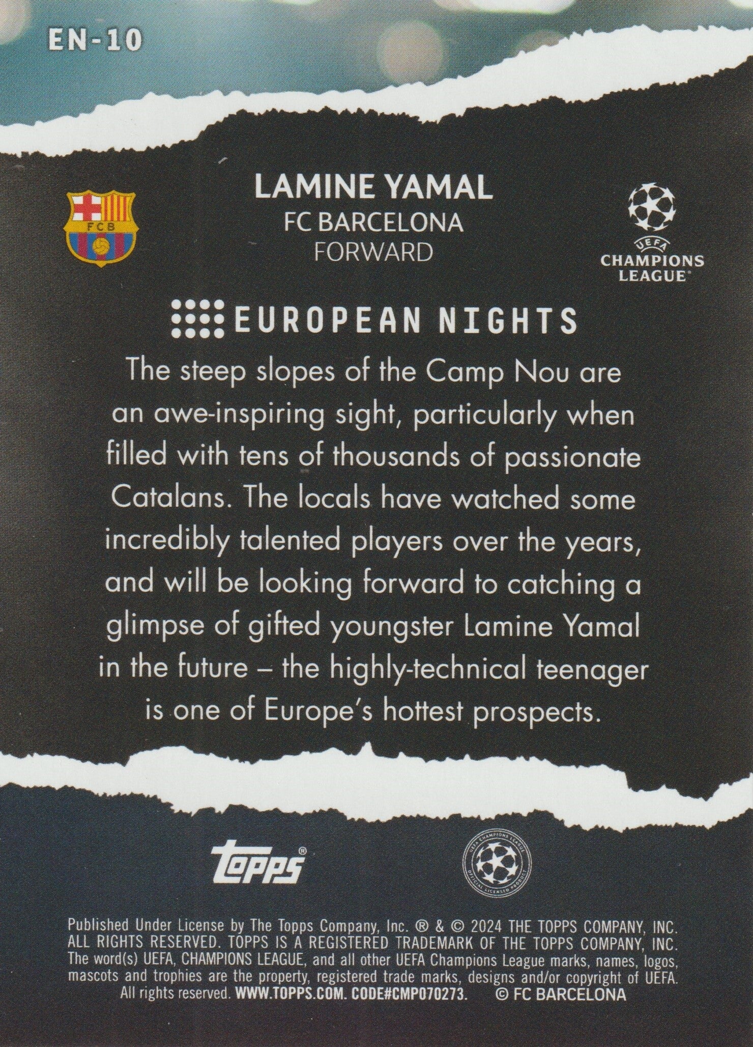 #EN-10: Lamine Yamal (FC Barcelona) ROOKIE - TOPPS UEFA CLUB COMPETITIONS 2023/2024