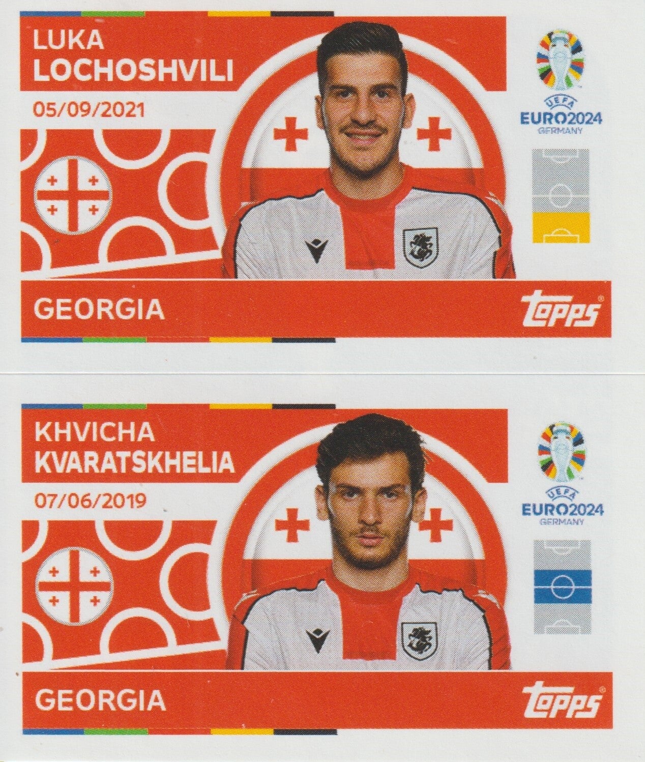 #GEO-8 / GEO-9: LUKA LOCHOSHVILI / KHVICHA KVARATSKHELIA (GEORGIA) - TOPPS UEFA EURO 2024 GERMANY