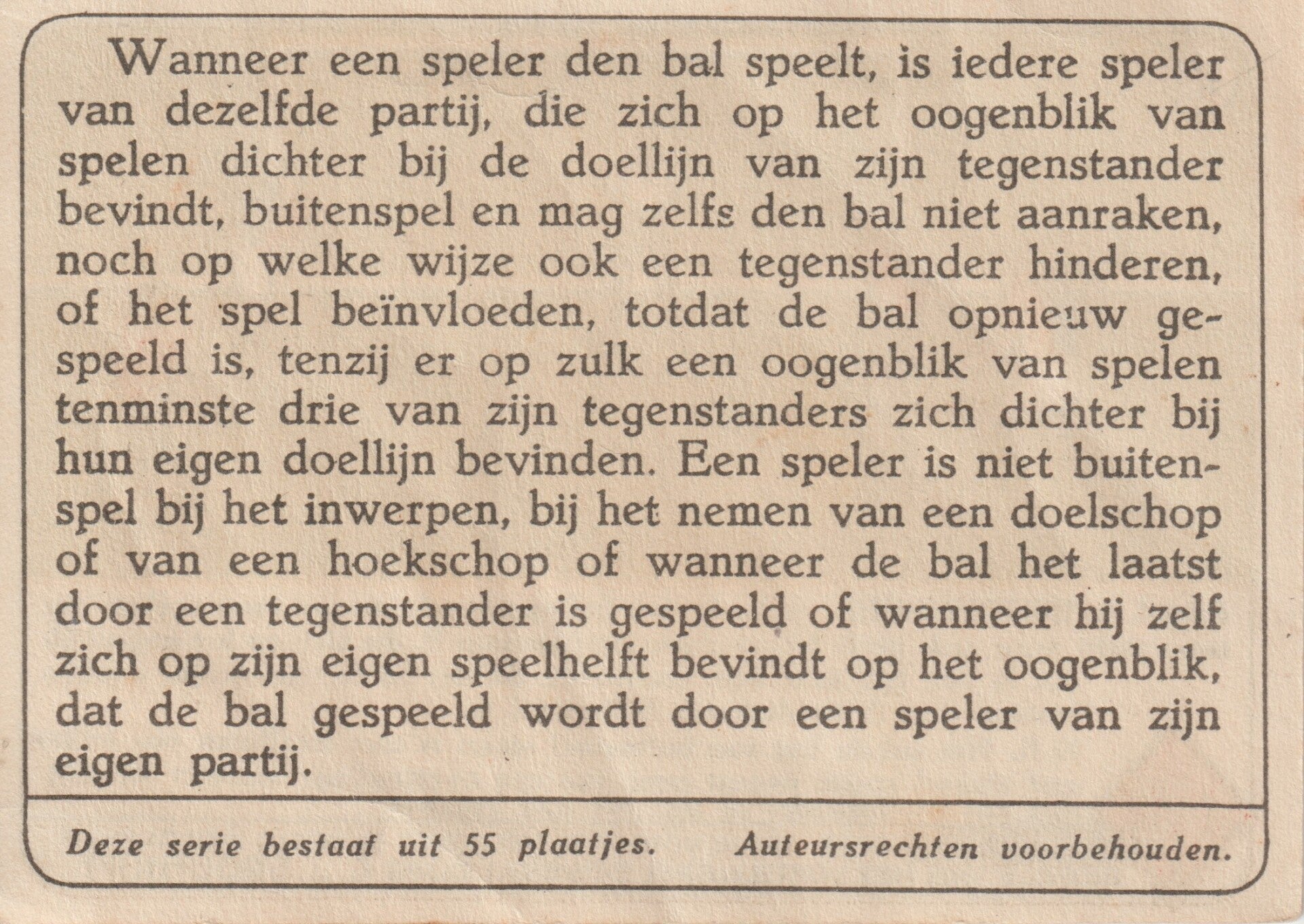 #18: Regel 6; Buitenspel - Philips Cigarettes: De regels van het voetbalspel (1924)