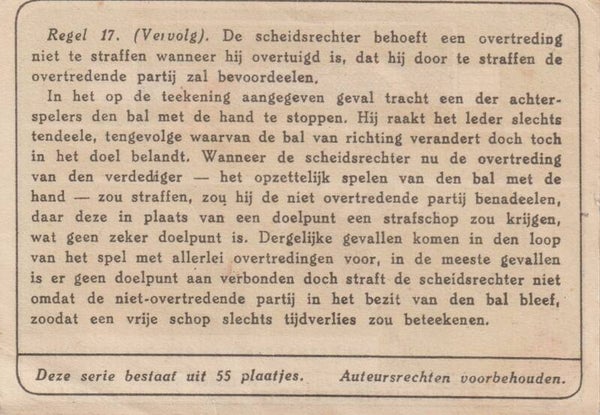 Philips Cigarettes - De regels van het voetbalspel (1924)Type: Base Card#55: Niet straffen van een overtreding
