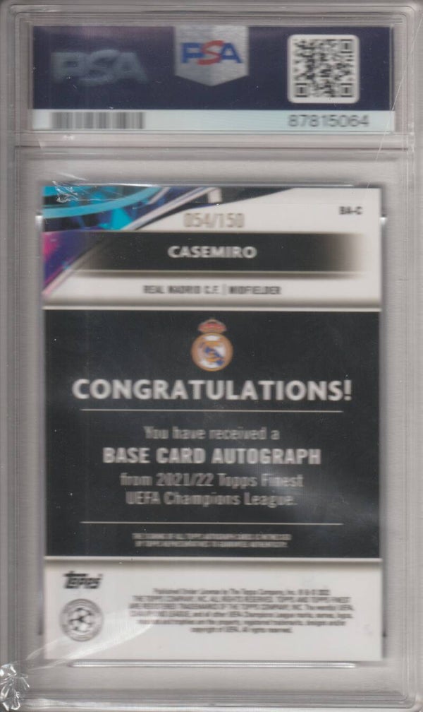 #BA-C: Casemiro (Real MAdrid C.F.) AUTO 054/150 - Topps Finest UCL 2021/2022 Auto-Blue Refractor - PSA GEM MT10