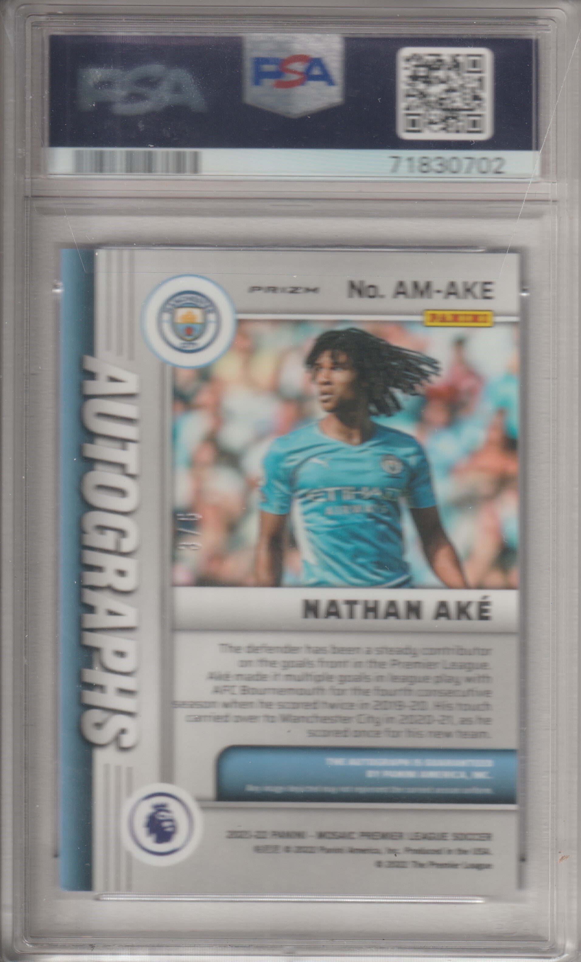 #AM-AKE: Nathan Aké (Manchester City) AUTO - Panini Prizm Auto Mosaic Pink Flrcnt 2021/2022