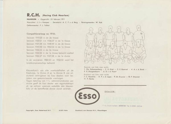 #9B: R.C.H. (Haarlem) - ESSO A4 Elftalplaat Eerste Divisie B 1958/1959