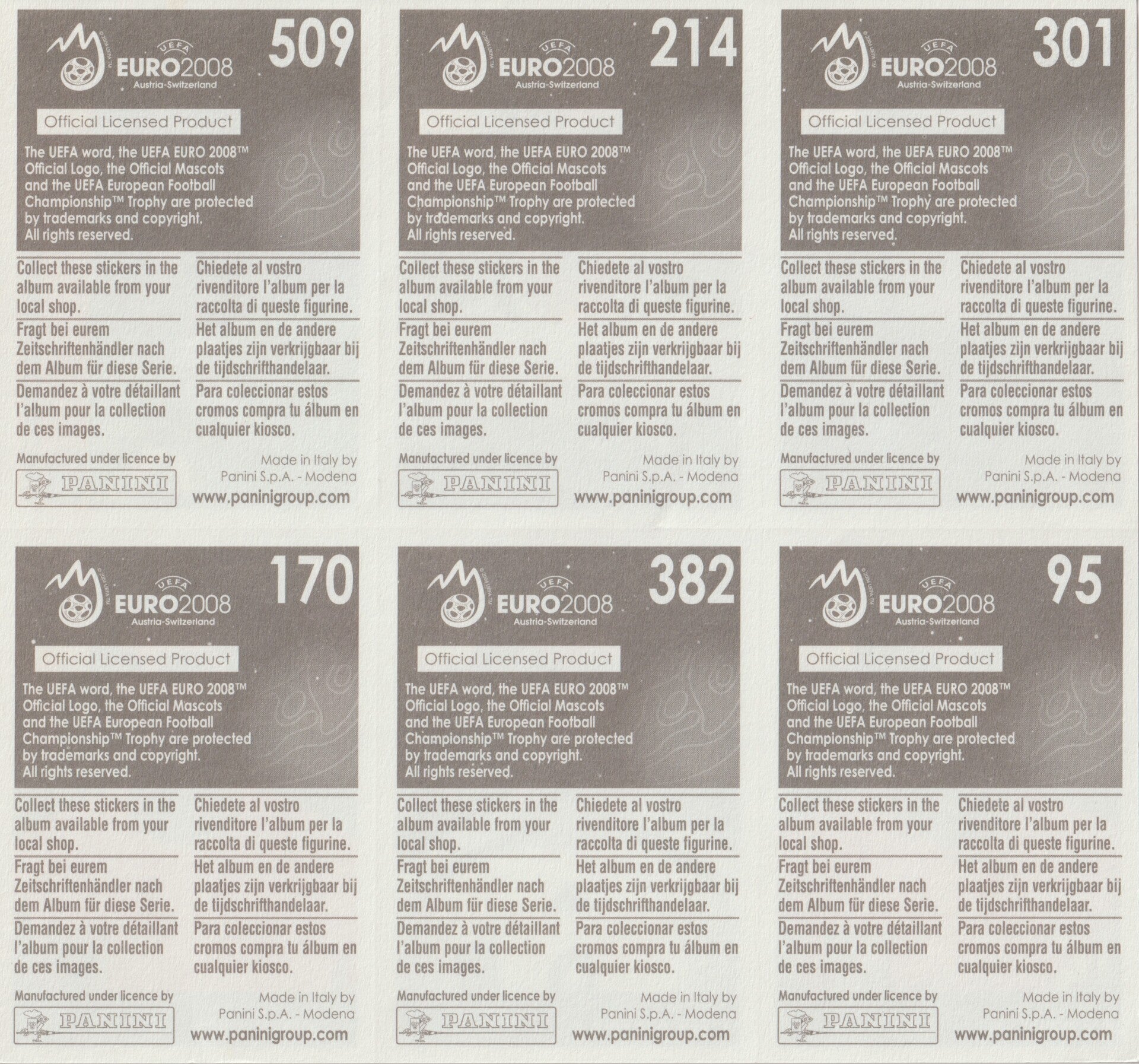 PANINI EURO 2008 Austria-Switzerland Stickervel (6x)