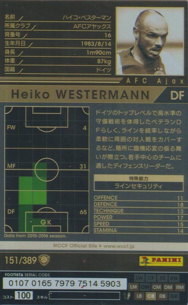 Heiko Westermann (Ajax) - Panini WCCF (SEGA) Footista 2016-2017