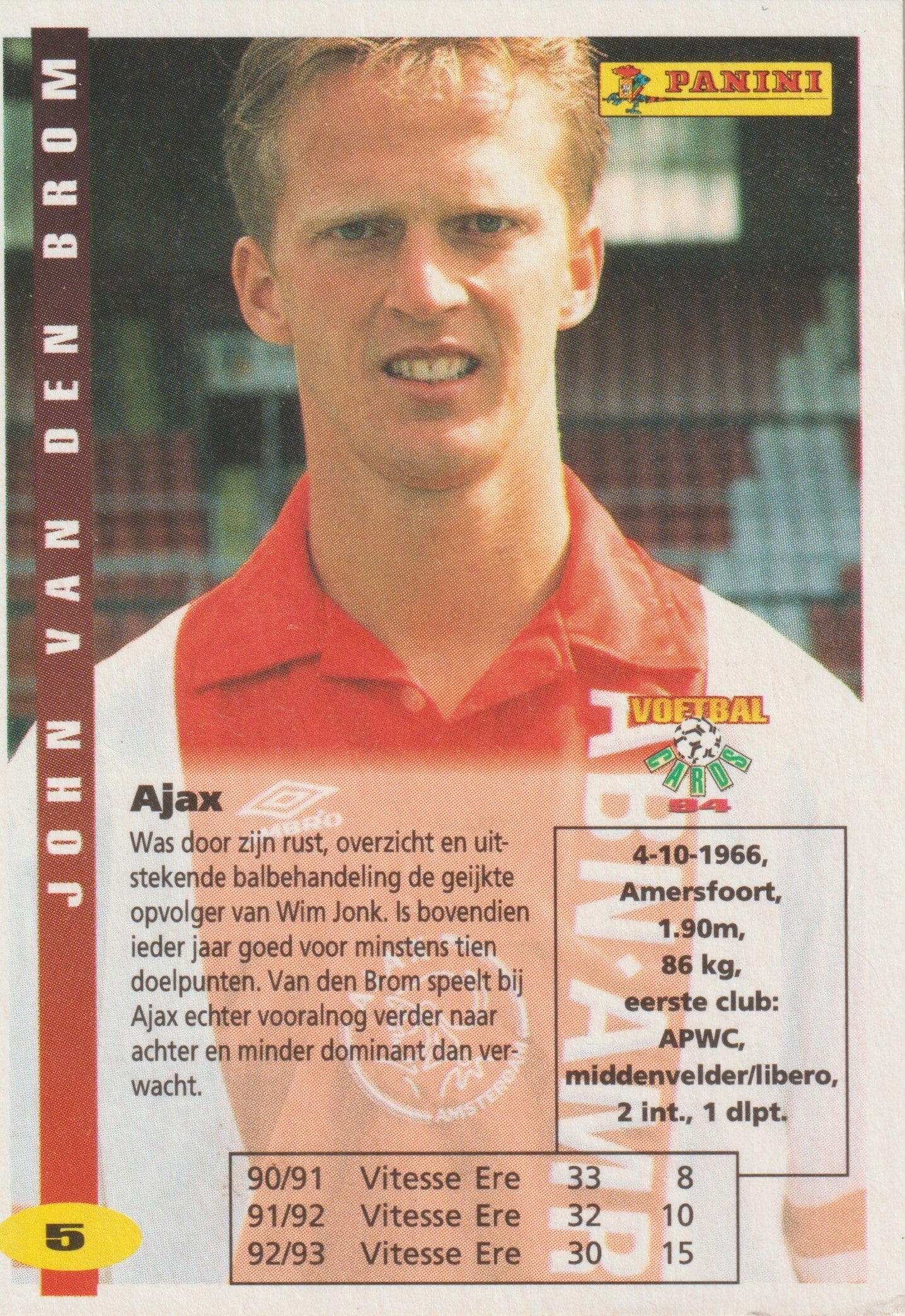 #5: John van den Brom (Ajax) - Panini Voetbal Cards 1993/1994