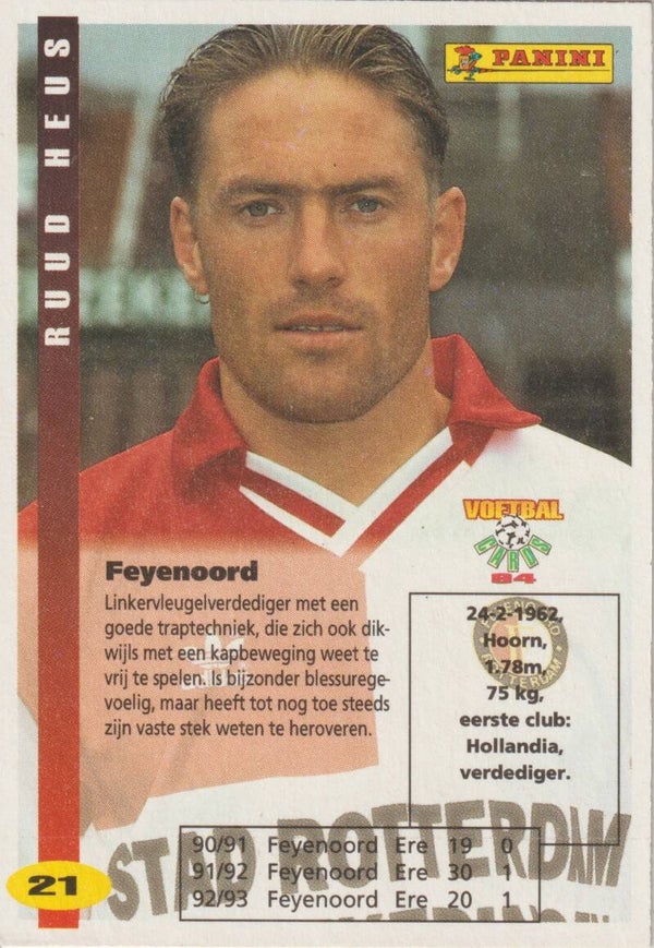 #21: Ruud Heus (Feyenoord) - Panini Voetbal Cards 1993/1994