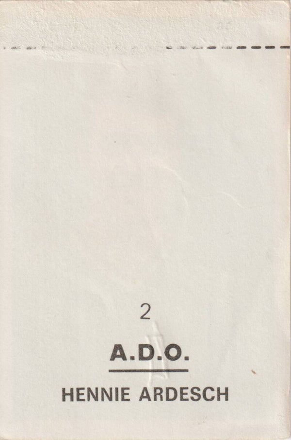 VanderHout Voetbalsterren 1969/1970Type: Plakplaatje#2: Hennie Ardesch (A.D.O.)Let op! Plaatje heeft potloodkrassen aan voorzijde.