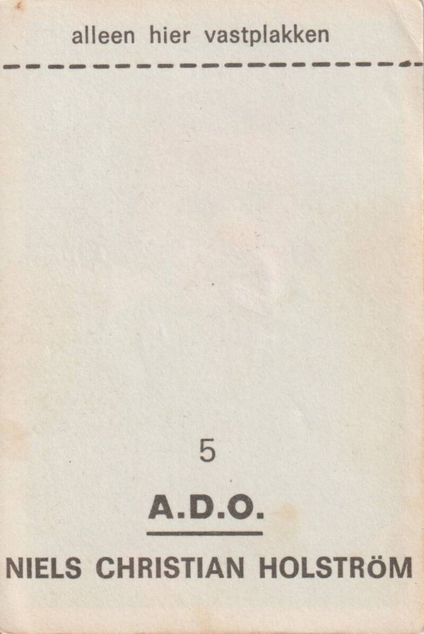 VanderHout Voetbalsterren 1969/1970Type: Plakplaatje#5: Niels Christian Holström (A.D.O.)Plaatje is niet ingeplakt geweest.