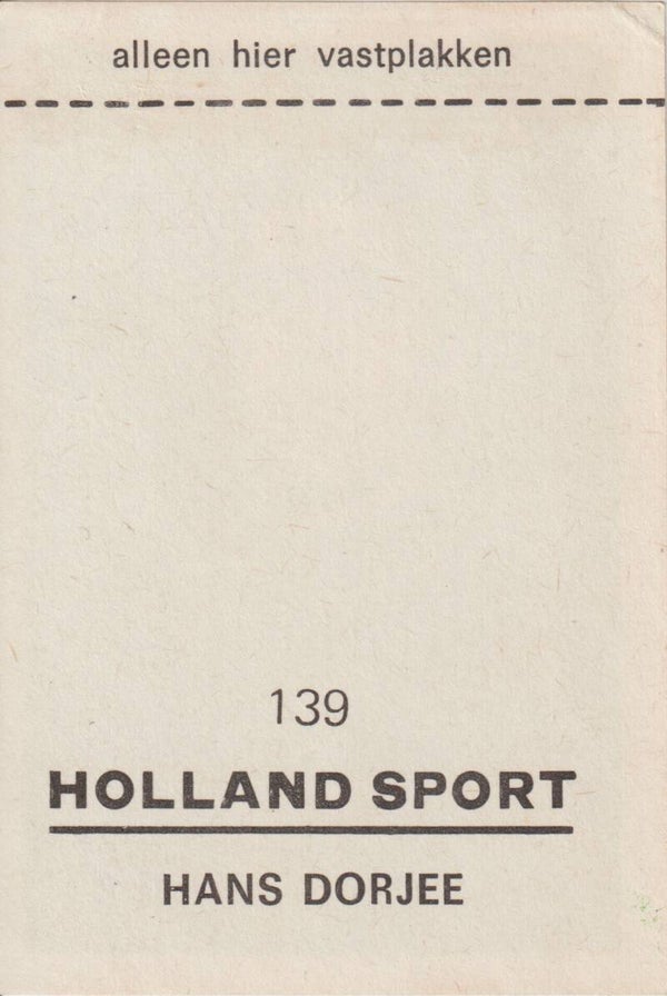 VanderHout Voetbalsterren 1969/1970Type: Plakplaatje#139: Hans Dorjee (Holland Sport)Plaatje is niet ingeplakt geweest.