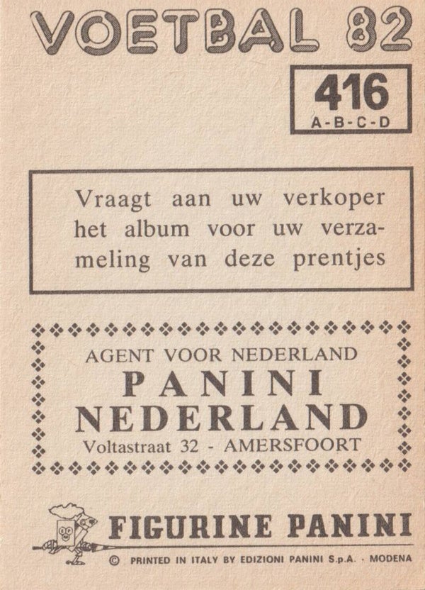 Panini Voetbal 82 (Eredivisie)Type: Kwartet sticker#416 a-b-c-d: Joop Heezen, Rudy Das, Hanny Das, Wim van Dongen (Vitesse)