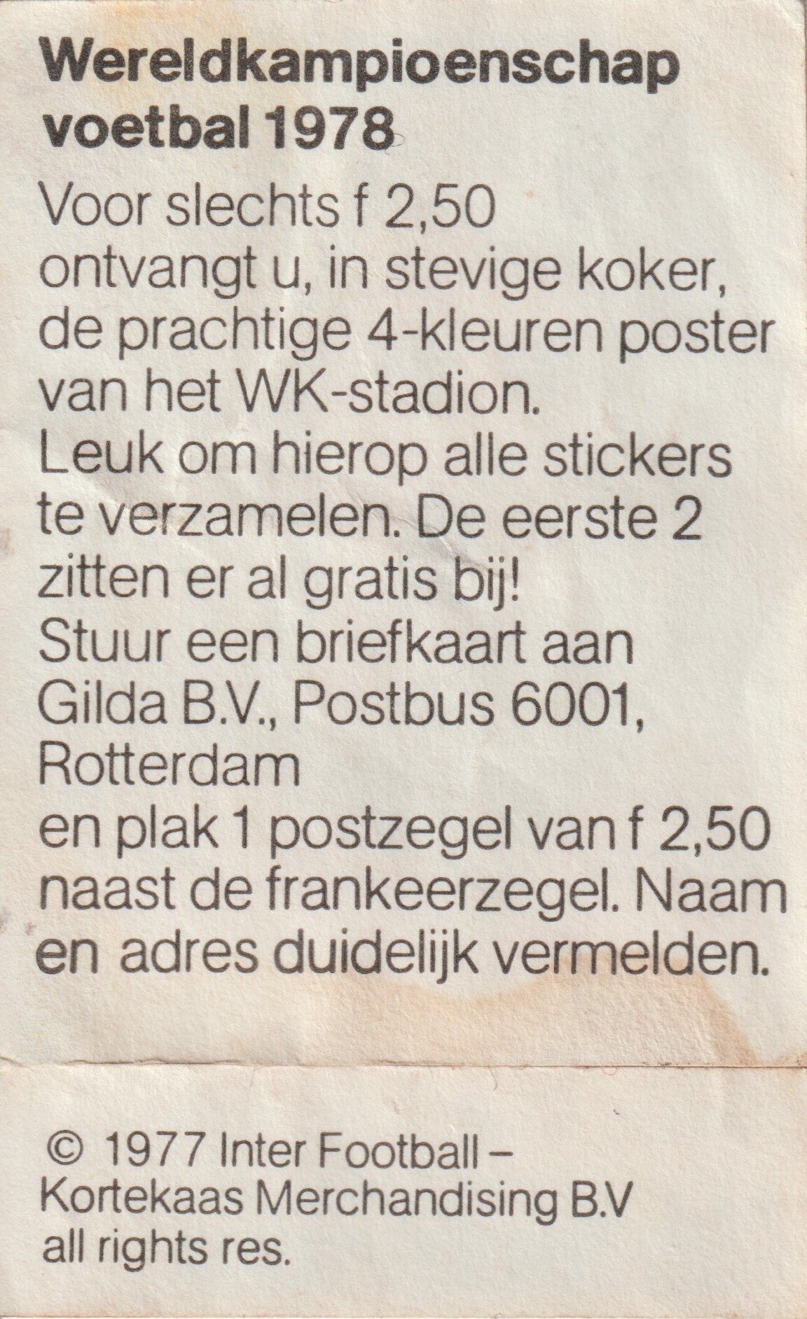 Origineel voetbalplaatje van het merk Inter Footbal uitgegeven door Kortekaas Merchandising BV in 1977. Betreft plaatje van Kees Kist van het Nederlands Elftal voor het WK 1978.