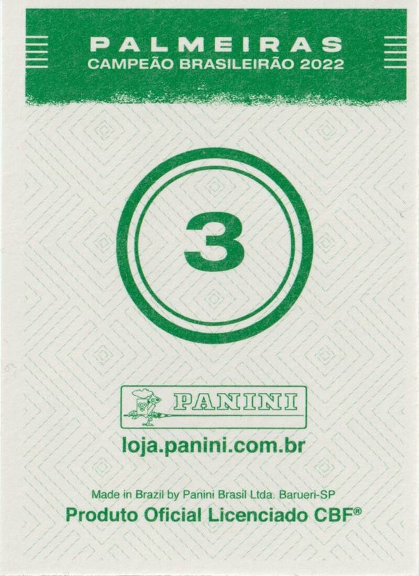 Origineel Panini voetbalplaatje van het thuistenue van Palmeiras gedragen door Palmeiras aanvaller "Dudu".Betreft plaatje #3 van Panini Palmeiras Campeão Brasileirão uitgegeven in november 2022.
