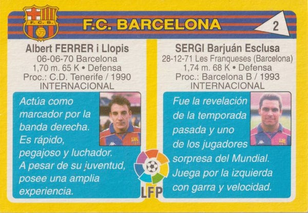 #2: Sergi / Ferrer (FC Barcelona) - Mundicromo sports futbol total liga 95